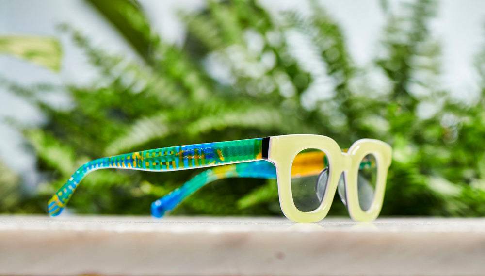 First thing’s first. There are a lot of very fun cuckoo bananas frames out there and they have our full support. Except when it comes to cheap materials. That we cannot excuse. It’s wasteful, and an insult to eyeglasses everywhere. If you’re going to ditch generic-looking specs, why not commit on every level – including the lenses.