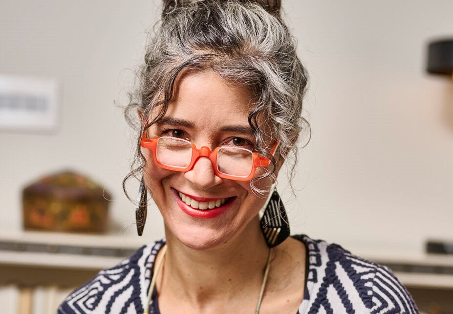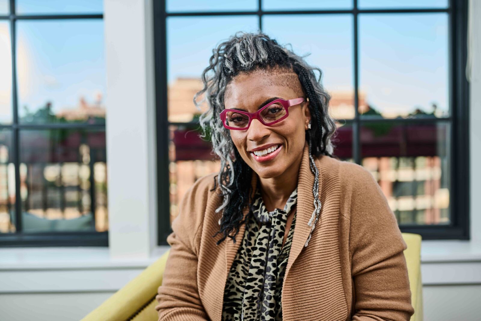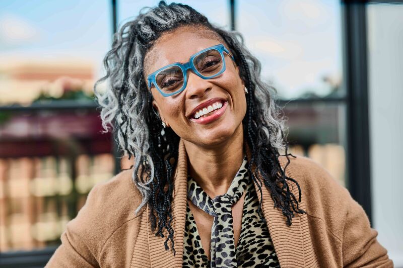 “I wanted the glasses to be an extension of my personality. Now people don’t recognize me when I’m not wearing them,” she says.