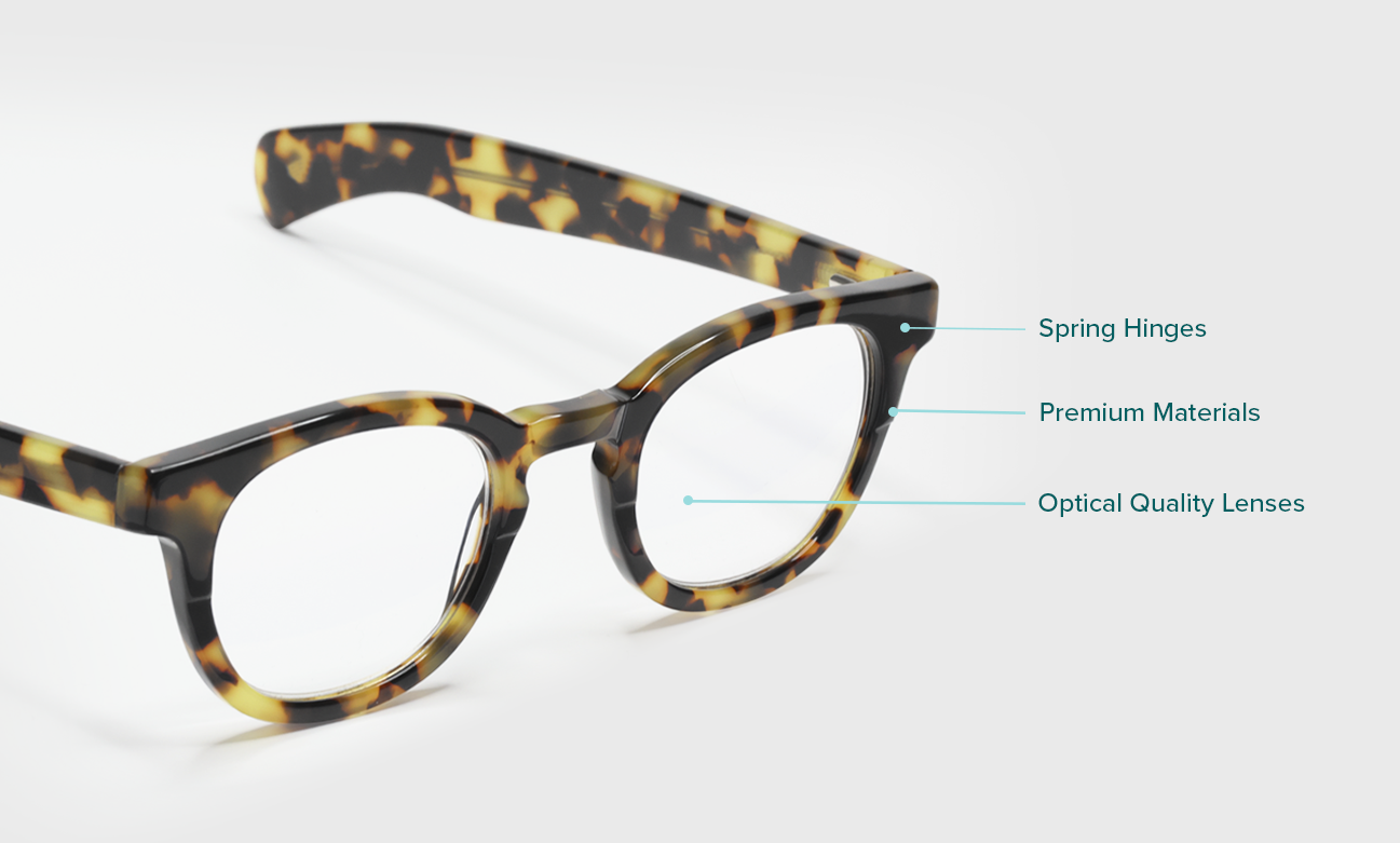 Available in diopters ranging from 0.00 to +4.00, our scratch-resistant and smudge-proof reader lenses will have noticing being noticed. PS – If Total Wit's paddle temples aren't your thing, Waylaid offers a similar shape with typical temples!