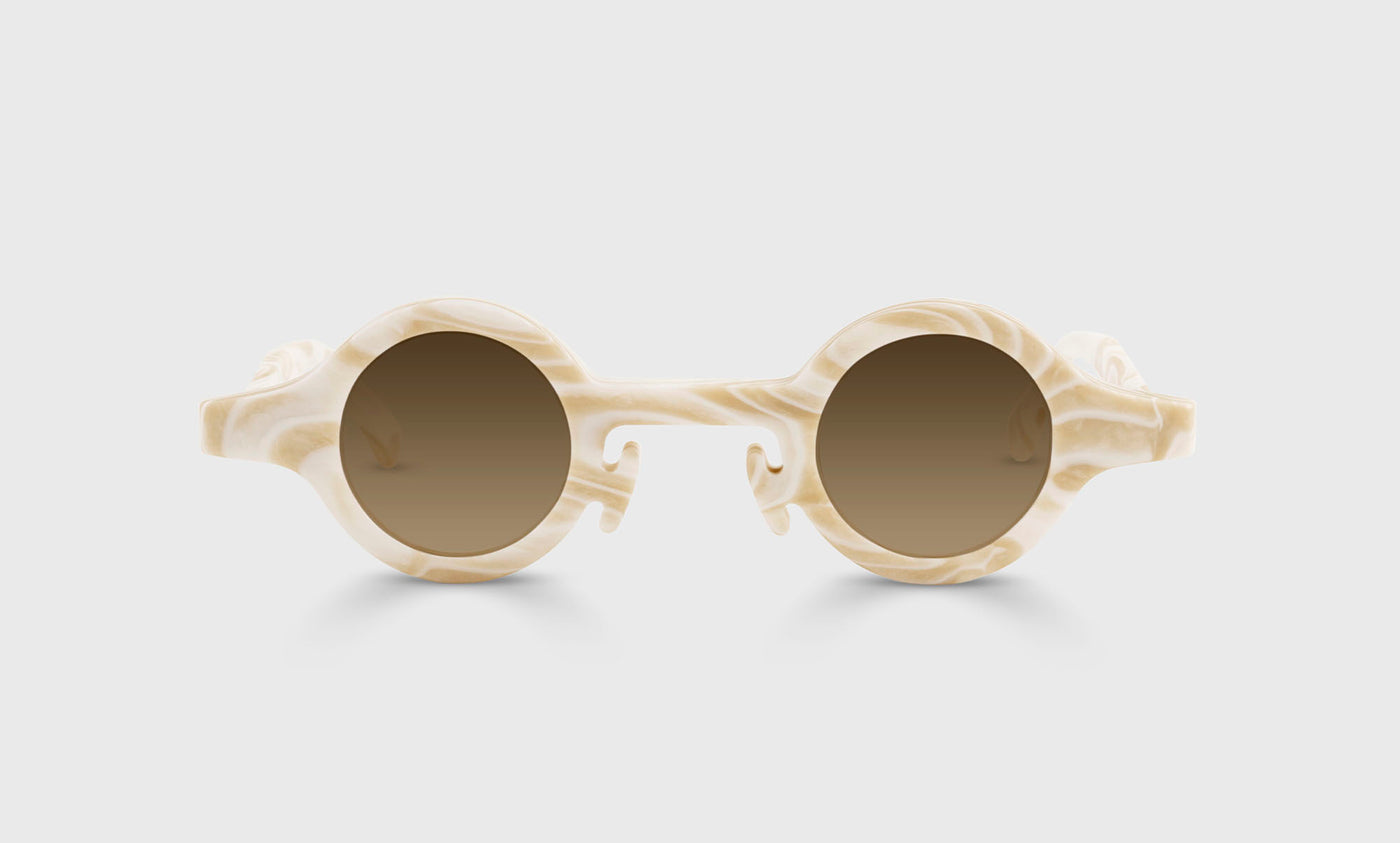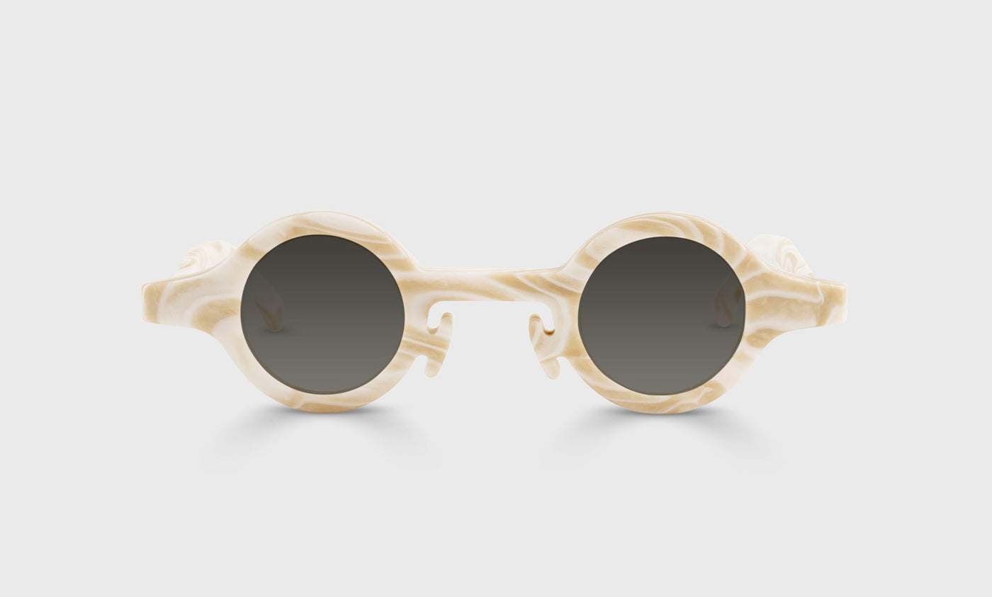 Thank you to Tevie K. for leaving us the review that inspired the name for this frame, and thank you to those who believe in wearing a fully rimmed frame low on your nose for inspiring this eccentric design. And yes, those are acetate nose pads you spy with your little eye.